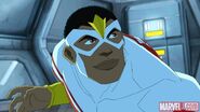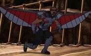 Sam Wilson served as a member of S.H.I.E.L.D. and often trained. However, during one of his training sessions, where he was scolded so viciously by Nick Fury, he received the Avengers Protocol from Iron Man. After being asked by Nick Fury where he was going, Sam told him that he was heading into the big leagues. However, Fury questioned what could be bigger than S.H.I.E.L.D. as he left. Upon entering Stark Tower, Sam was greeted by J.A.R.V.I.S., whom he expressed his interest in becoming a member of the Avengers too. Though JARVIS told him that Iron Man had suggested that he wear the War Machine armor, Sam insisted on wearing the Red-Wing suit, later called the Falcon Armor. In the meantime, the other responders of the Avengers Protocol went with Iron Man to fight Red Skull at the Arctic Base. Sam learned of their location and made his way there.